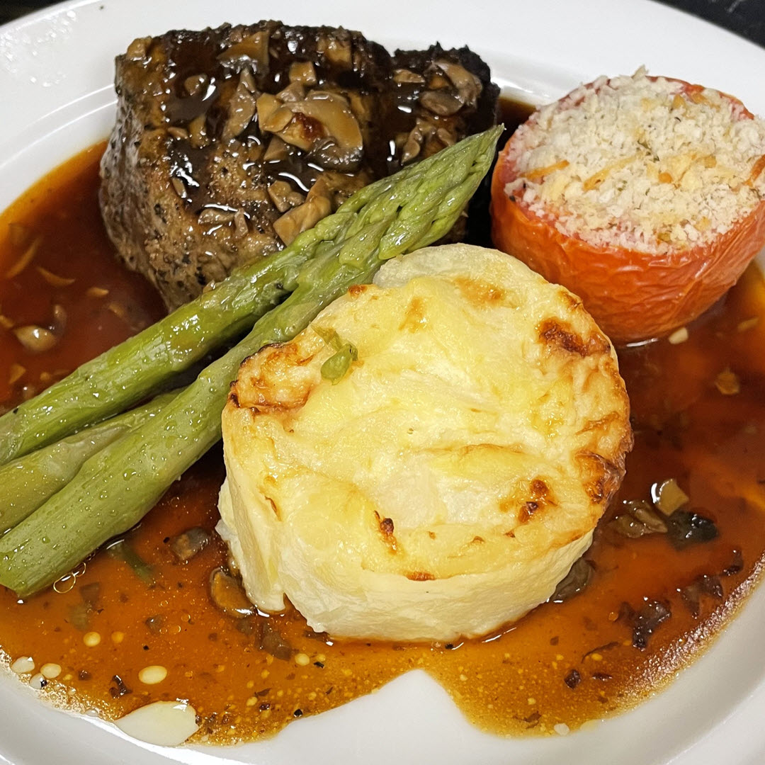 After the I Do’s it is time to dine and party! “We did a full-service dinner with cocktail hour and late-night snack. Main entrees included steak, fish, and mushroom lasagna. Everyone raved about the mushroom lasagna. We were grateful to Shannon who set aside appetizers at the head table because we did not have time to grab some ourselves. Sadly, I cannot say I tried our late-night snack as I was busy breakin’ it down on the dancefloor, but I heard complimentary reviews the next day and how impressed our guests were at the options.”